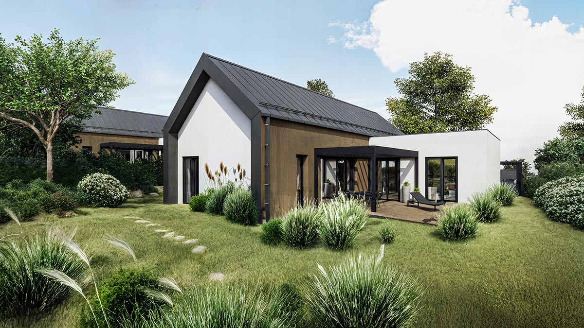 Varianta zahrnuje napojení na inženýrské sítě, oplocení a venkovní hrubé terénní úpravy.