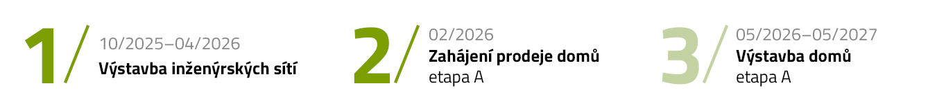 Projekt Zlíč ve třech etapách nabídne celkem 25 moderních jednopodlažních domů navržených s důrazem na kvalitu, pohodlí a energetickou úspornost. Domy jsou navrženy s úsporným zdrojem vytápění pomocí tepelného čerpadla vzduch–voda a splňují nejnovější standardy pro komfortní a ekologické bydlení.