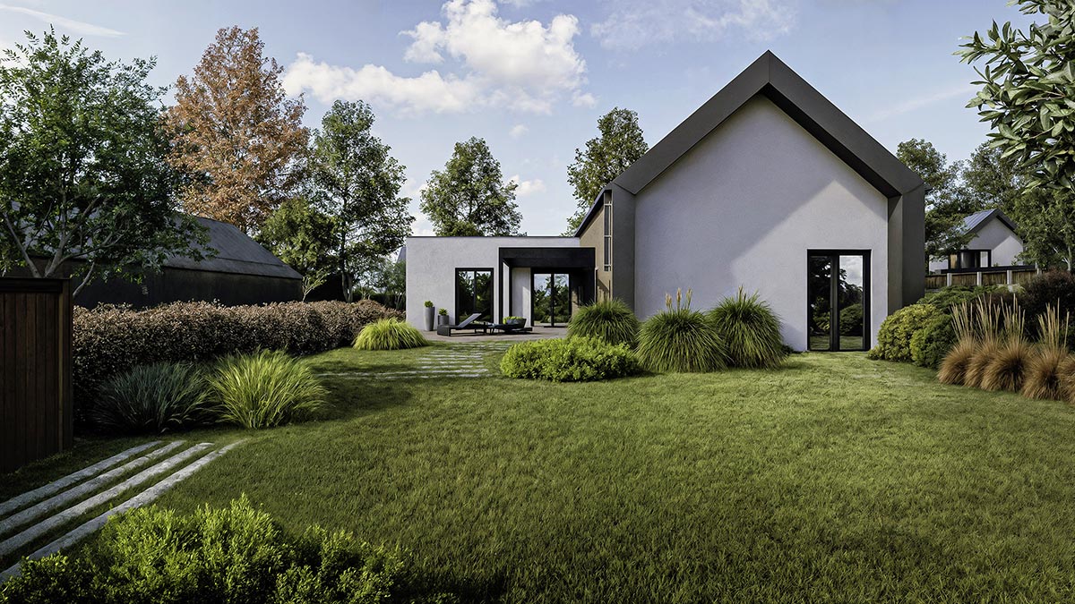 Varianta zahrnuje napojení na inženýrské sítě, oplocení a venkovní hrubé terénní úpravy.
